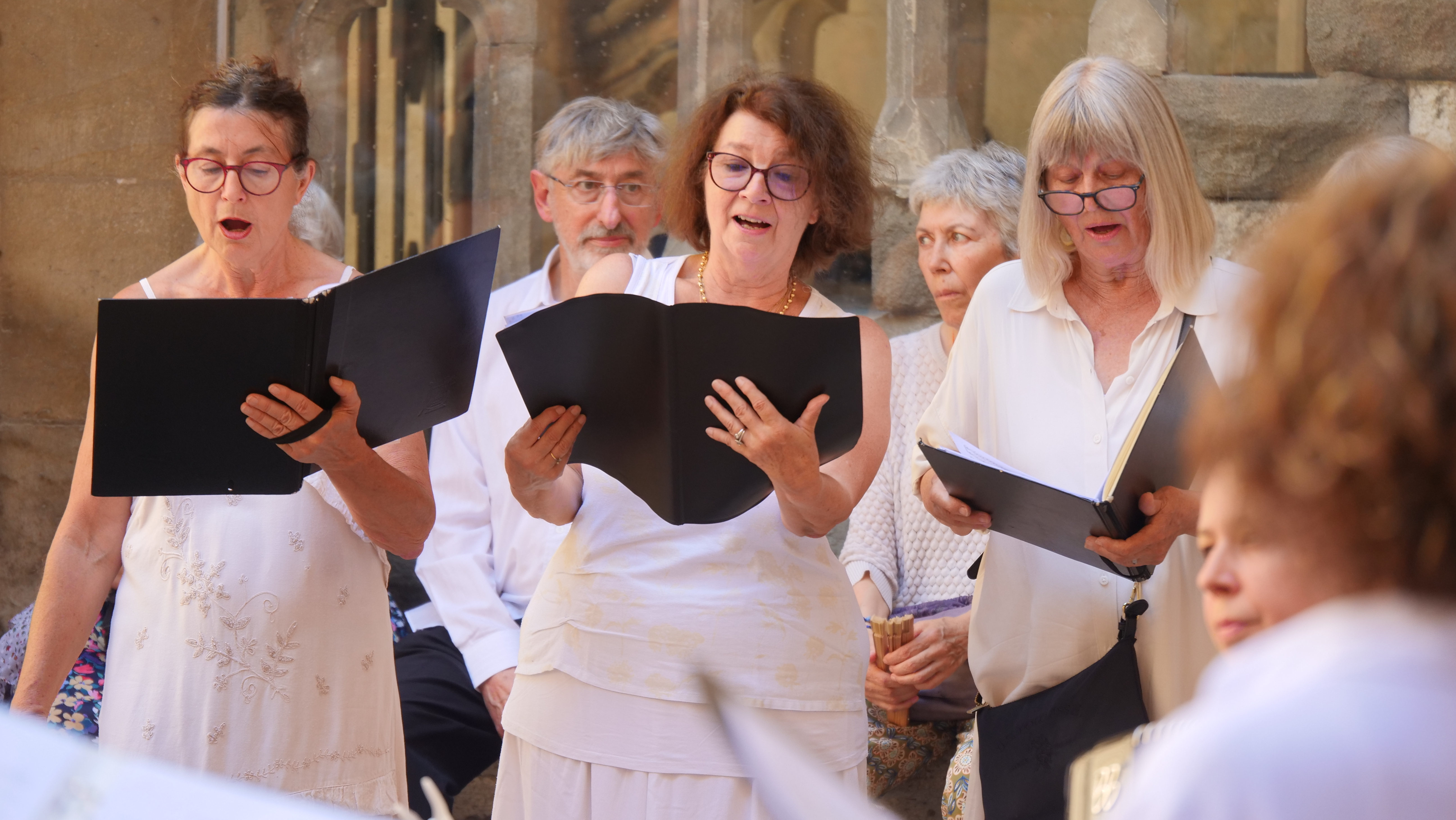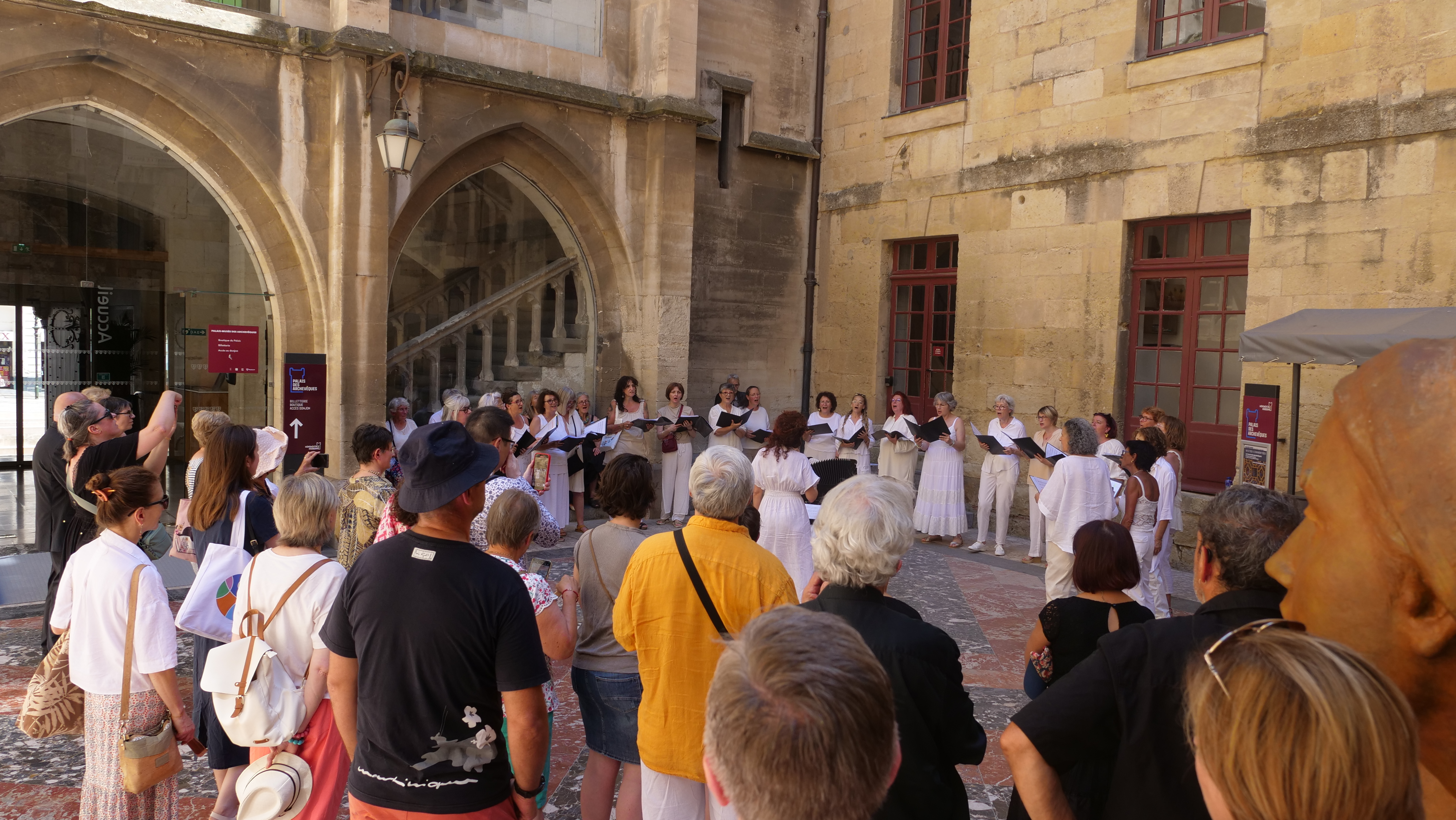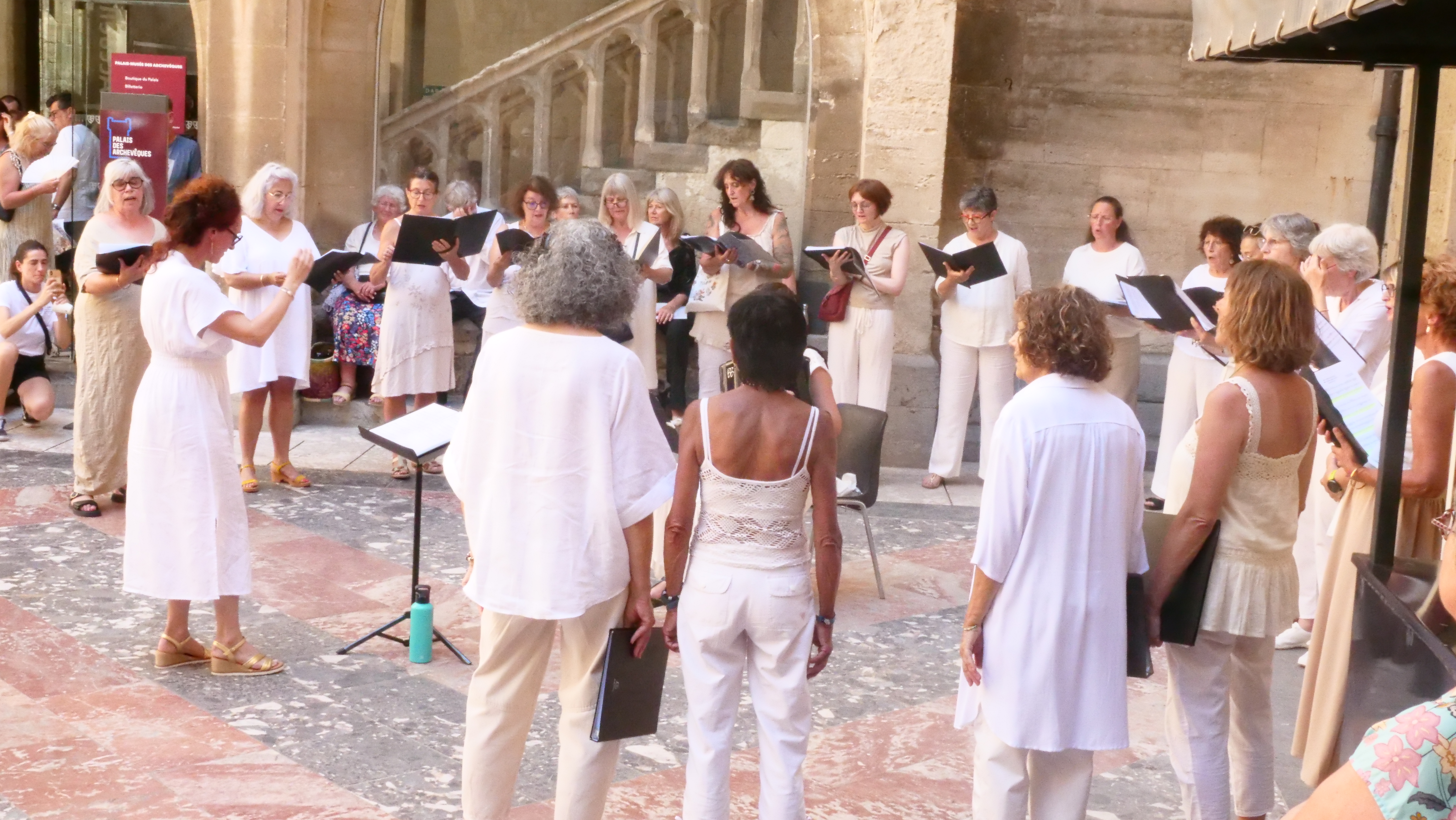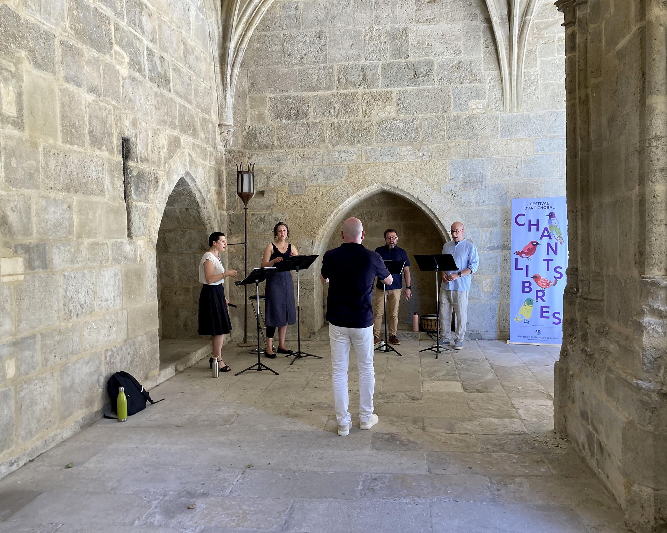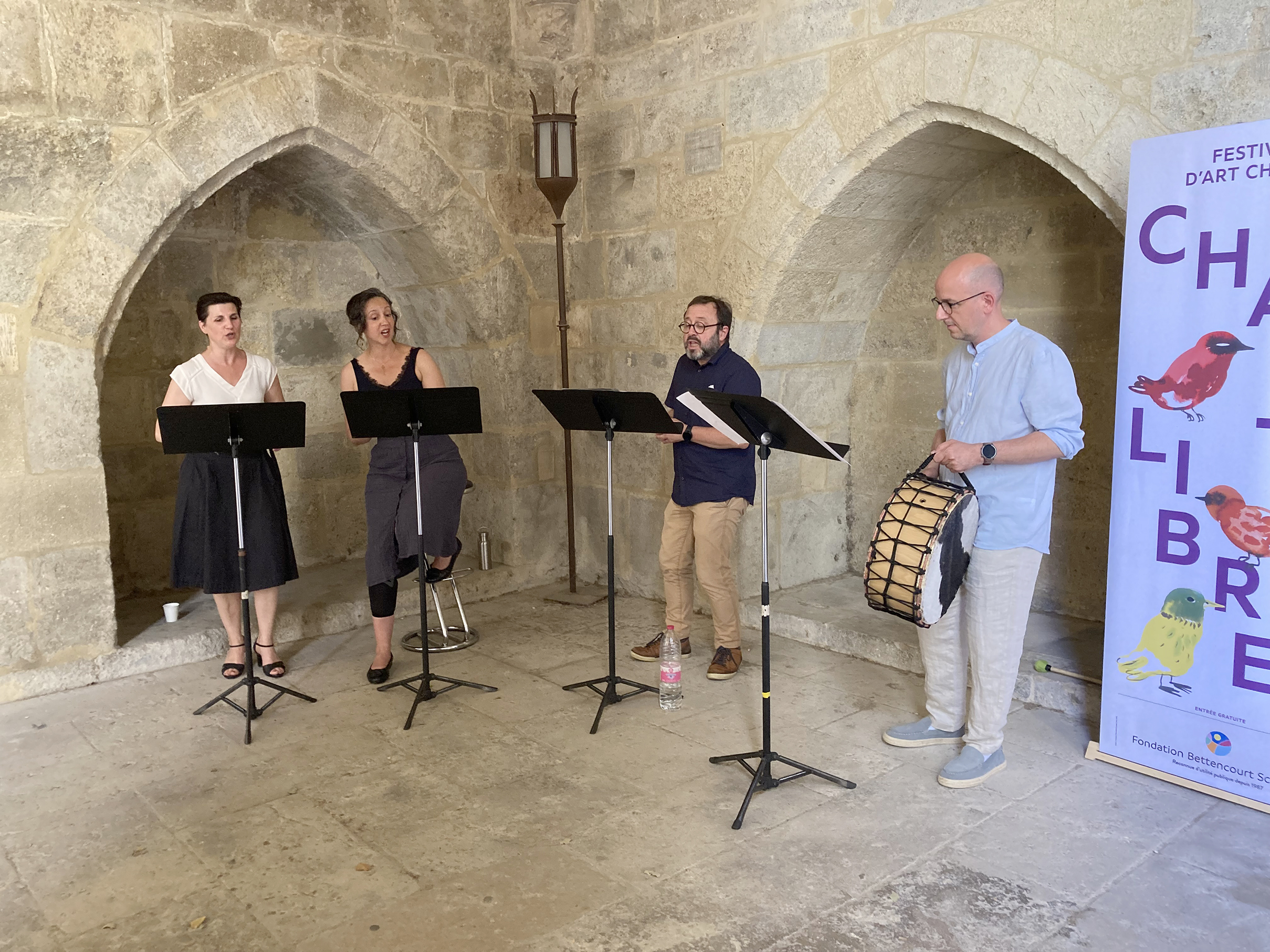 Cécile Dibon-Lafarge, Margot Mellouli, Marc Manodritta, Antonio Guirao-Valverde dans le Cloître de la Cathédrale