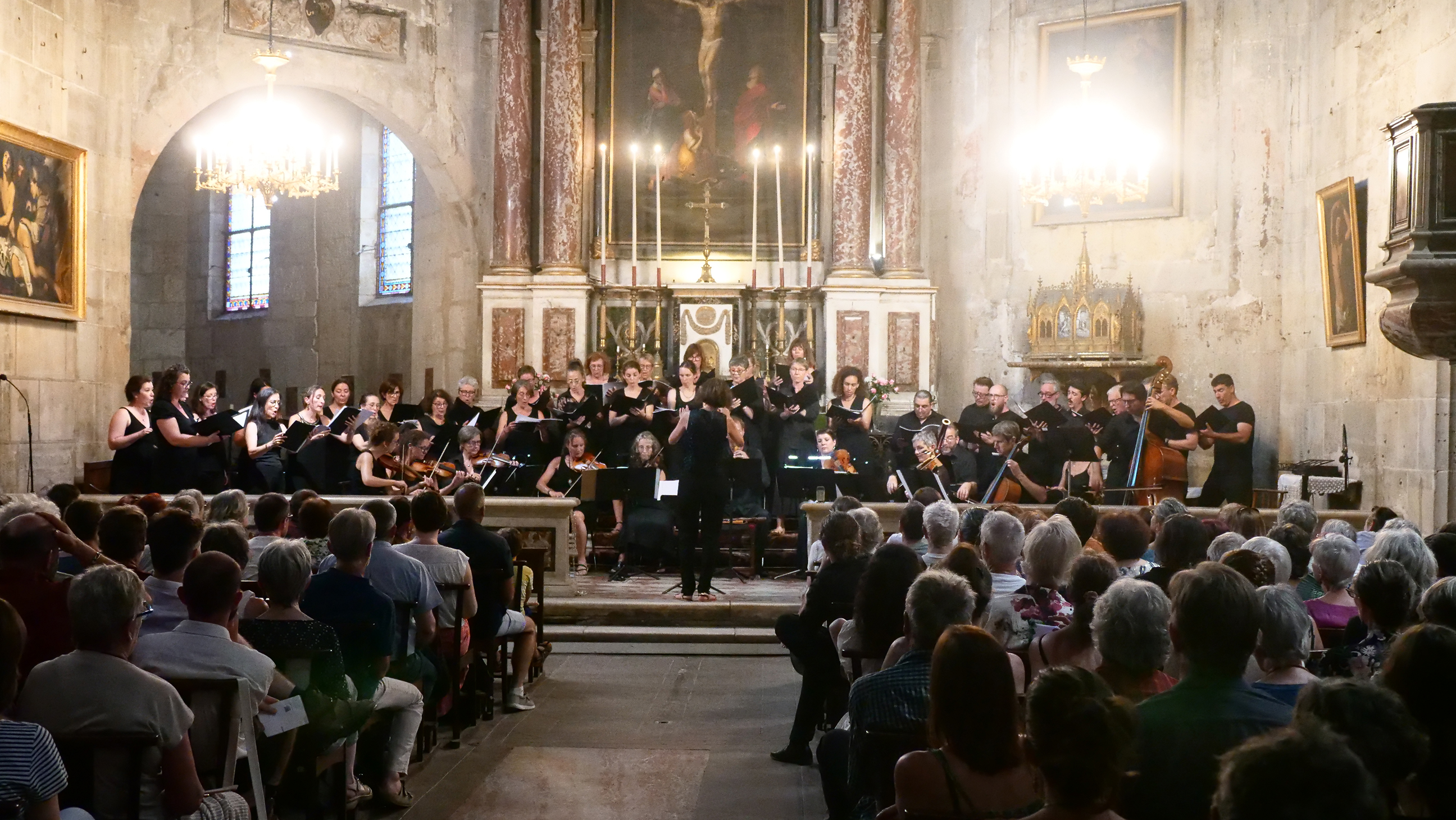 Le Choeur de chambre Les Éléments y a interprété son programme a capella Au-delà des Cimes et Waves of light avec le trio Paul Lay.