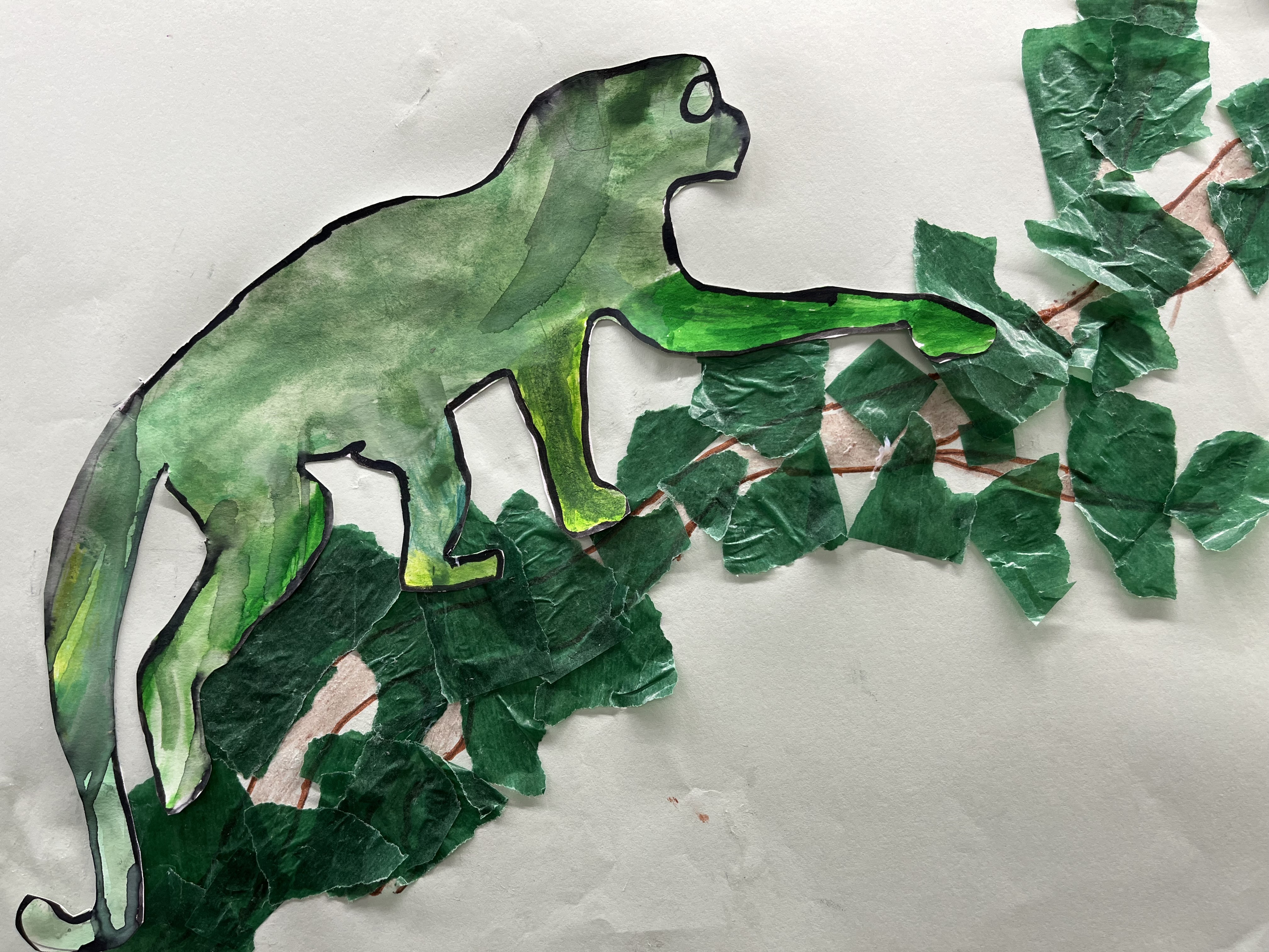 A la nuit tombée, il découvre les autres habitants de l’arbre : les vers luisants, les léopards, le paon et les singes. Il entend le caméléon et voit les papillons.