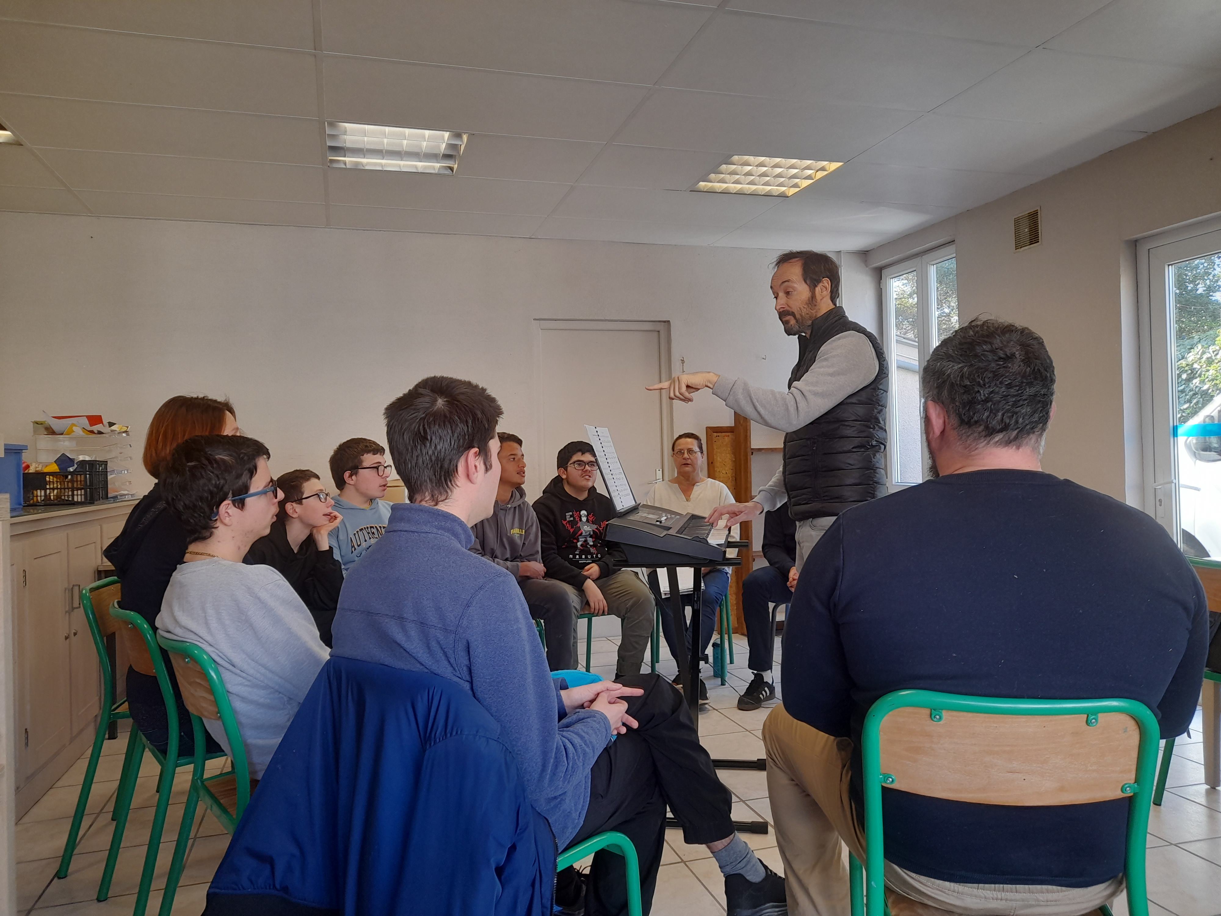 Avec les chanteurs Antonio Guirao-Valverde et Paul Crémazy, 25 adolescents en situation de handicap mental et parfois physique et 5 adultes des équipes encadrantes et du personnel du Centre ont travaillé plus de 24 heures pour préparer cette représentation.