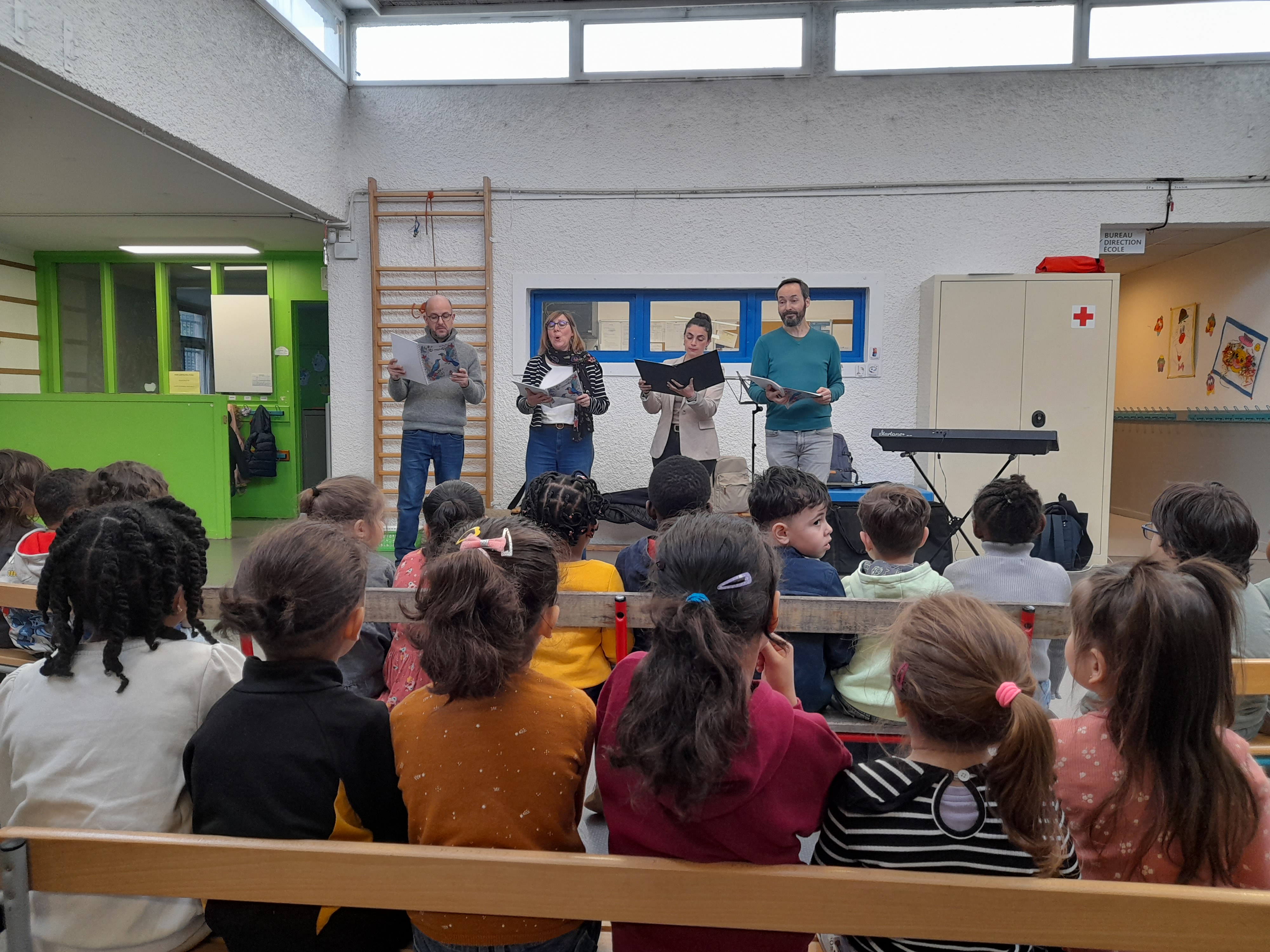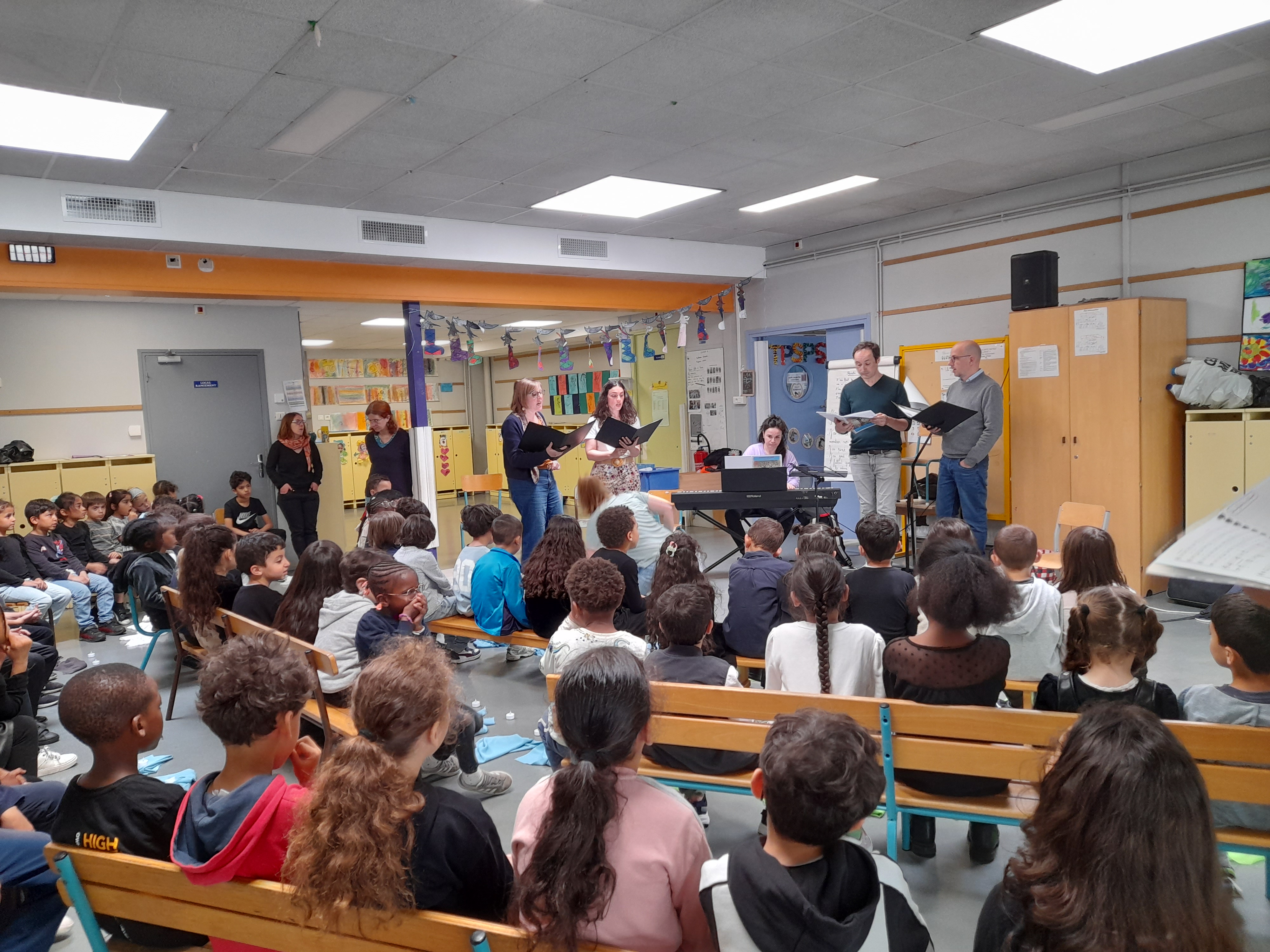 Ce parcours a donné lieu à la visite d’un quatuor de chanteurs du Chœur de chambre Les Éléments venu chanter et échanger avec les enfants - Anne-Laure Touya, soprano, Cécile Piovan, alto, Paul Crémazy, ténor, Antonio Guirao-Valverde, basse - et à deux restitutions pour les familles des enfants, à l’école.